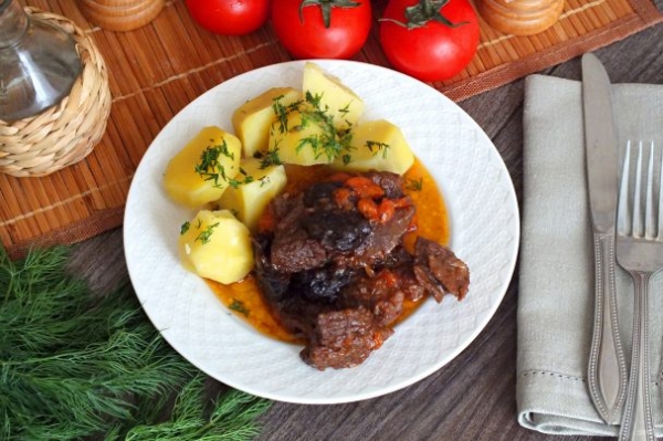 Тушеная говядина в пиве с черносливом