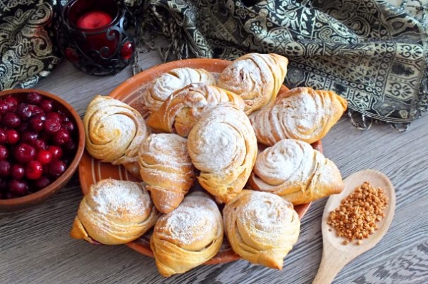 "Бадамбура" — это слоистые азербайджанские песочно-дрожжевые пирожки с орехами. Я предлагаю поэкспериментировать и добавить в начинку вишню. Давайте приготовим!