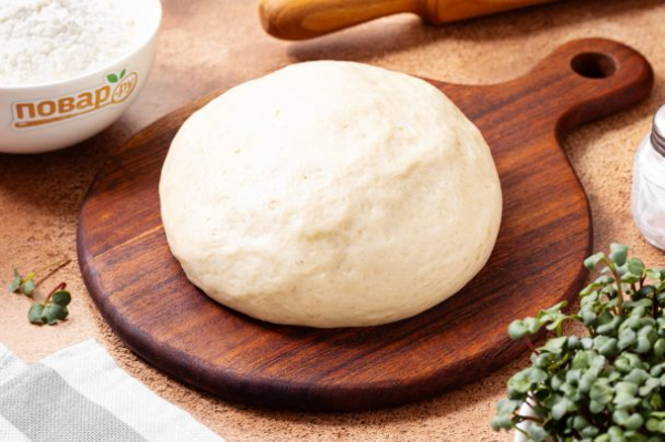 Тесто должно получаться мягким, податливым, может чуть липнуть к рукам. Допустимо подсыпать еще немного муки, но не сильно забивайте его. Скатайте тесто в шар, выложите в глубокую миску смазанную растительным маслом. Накройте пленкой и уберите в теплое место на 1-1.5 часа.