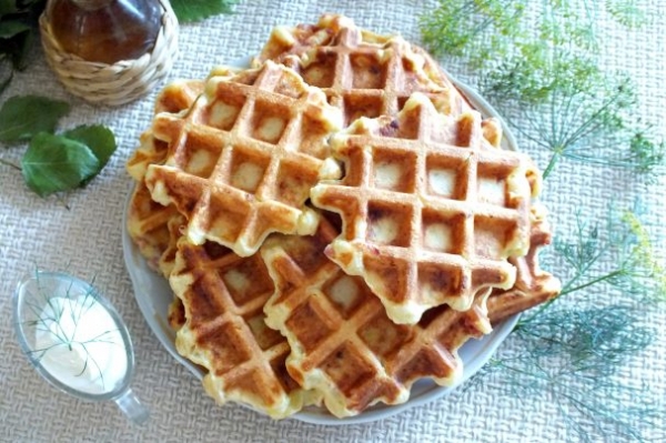 Думаю не секрет, что вафли могут быть не только сладкие, но и соленые, пряные и т.д. Для любителей таких закусок предлагаю вариант картофельных вафель с добавлением бекона. Берите рецепт на заметку!