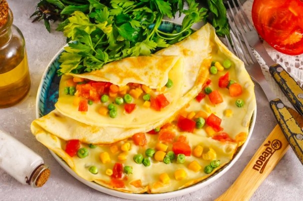 Красочные мексиканские блины можно подать как самостоятельное блюдо или вместе с любым супом, соусом для большей сытности. По желанию добавьте нарезанный красный лук, если блины будут есть взрослые.
