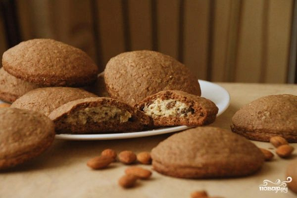 Противень застилаем пергаментной бумагой или смазываем сливочным маслом. Выкладываем на противень вырезанные нами кружочки, на каждый из них выкладываем по чуть-чуть начинки, а затем накрываем начинку вторым аналогичным кружочком. Слегка залепляем по краям. Выпекаем 20 минут при 180 градусах.