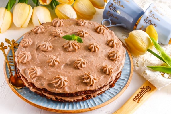 Шоколадный торт получится не только вкусным, но еще и очень сытным. Он не прибавит вам лишних сантиметров ни на талии, ни на бедрах, однако лучше всего подавать такое лакомство не на ужин, а на завтрак или на обед как десерт.