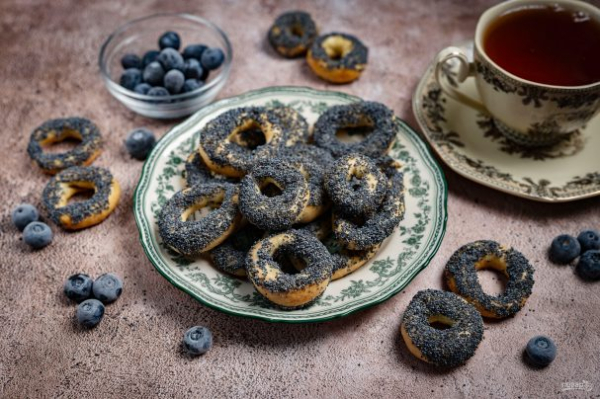 И переносите на тарелку с маком. Обваляйте каждую сушку в маке.