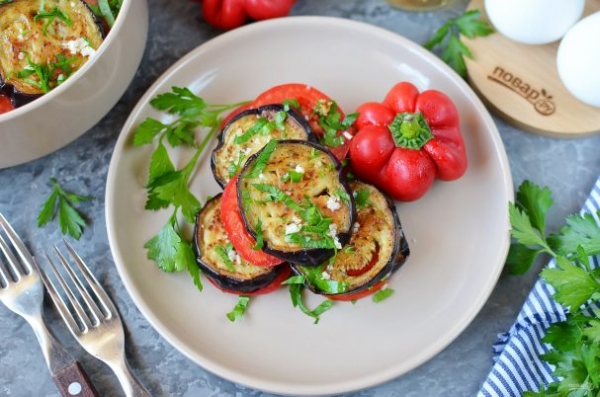 Когда все баклажаны и помидоры будут выложены, накройте крышкой и уберите в холодильник на 1-1,5 часа для пропитки.
