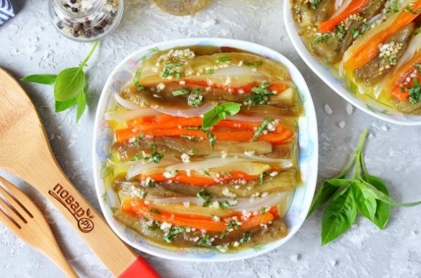 Некоторые хозяйки вместо лука запекают помидоры, такой вариант тоже интересен, но мне больше нравится с печеным луком. Нежные овощи просто тают во рту, а свежий базилик и чеснок придает им неповторимый аромат и вкус! Это одна из самых желанных закусок на моем столе, стараюсь готовить ее как можно чаще в сезон баклажанов. Смотрите рецепт!
