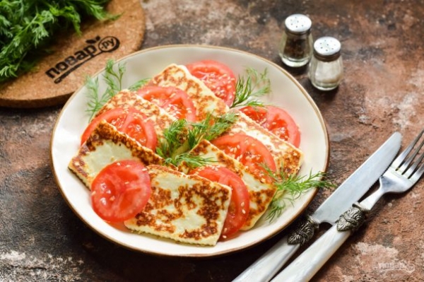 Жареный адыгейский сыр с помидорами
