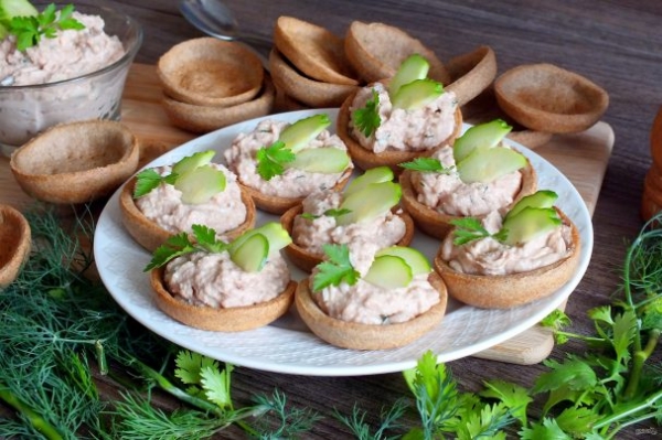 Ржаные тарталетки можно наполнить мясными закусками. По структуре они получаются хрусткими и очень лёгкими. Удачи в приготовлении!