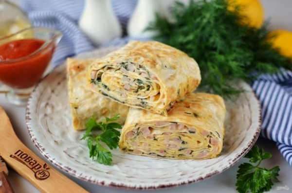 Рулет из лаваша на сковороде