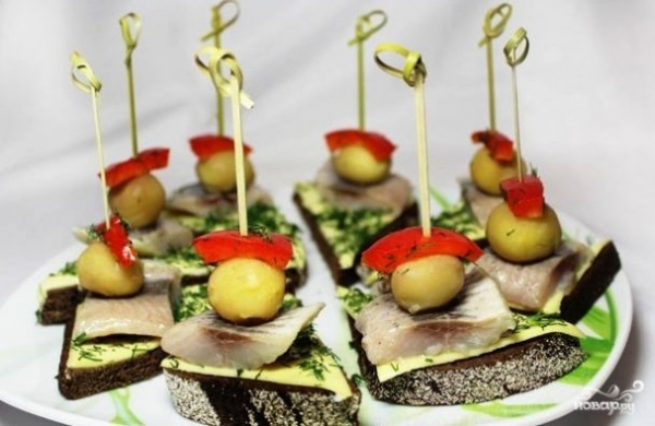 Закуска из черного хлеба с сельдью